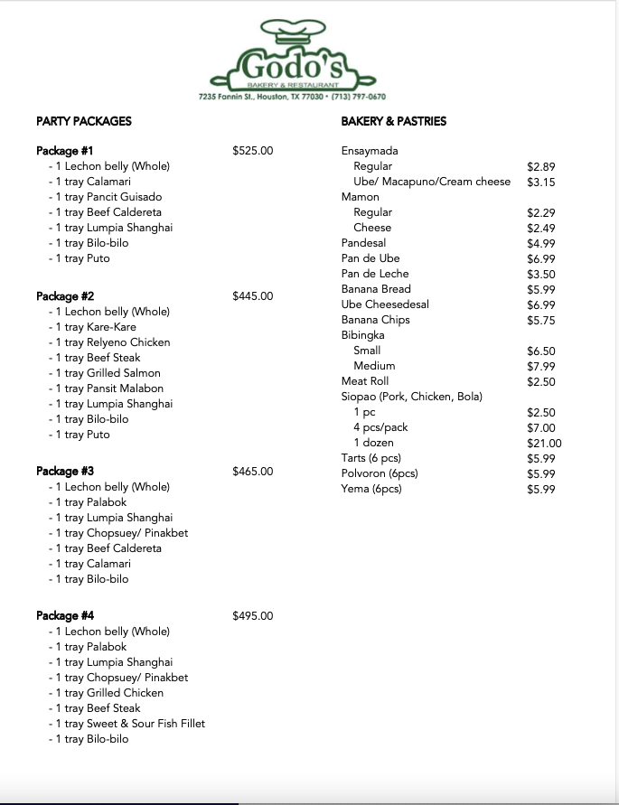 Welcome to Godo's, a delightful gem located at 7235 Fannin St, Houston, TX. This charming eatery invites you to enjoy authentic Filipino cuisine that warms the soul. Each dish is a testament to the rich culinary heritage of the Philippines.